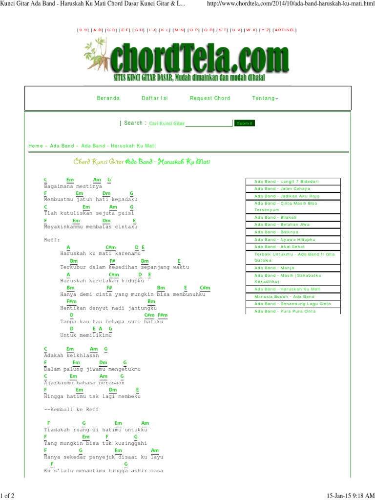 Chord Gitar Chordtela / Kunci Gitar Ada Band - Haruskah Ku Mati Chord Dasar Kunci Gitar & Lirik Lagu ©ChordTela.com - More images for chord gitar chordtela »